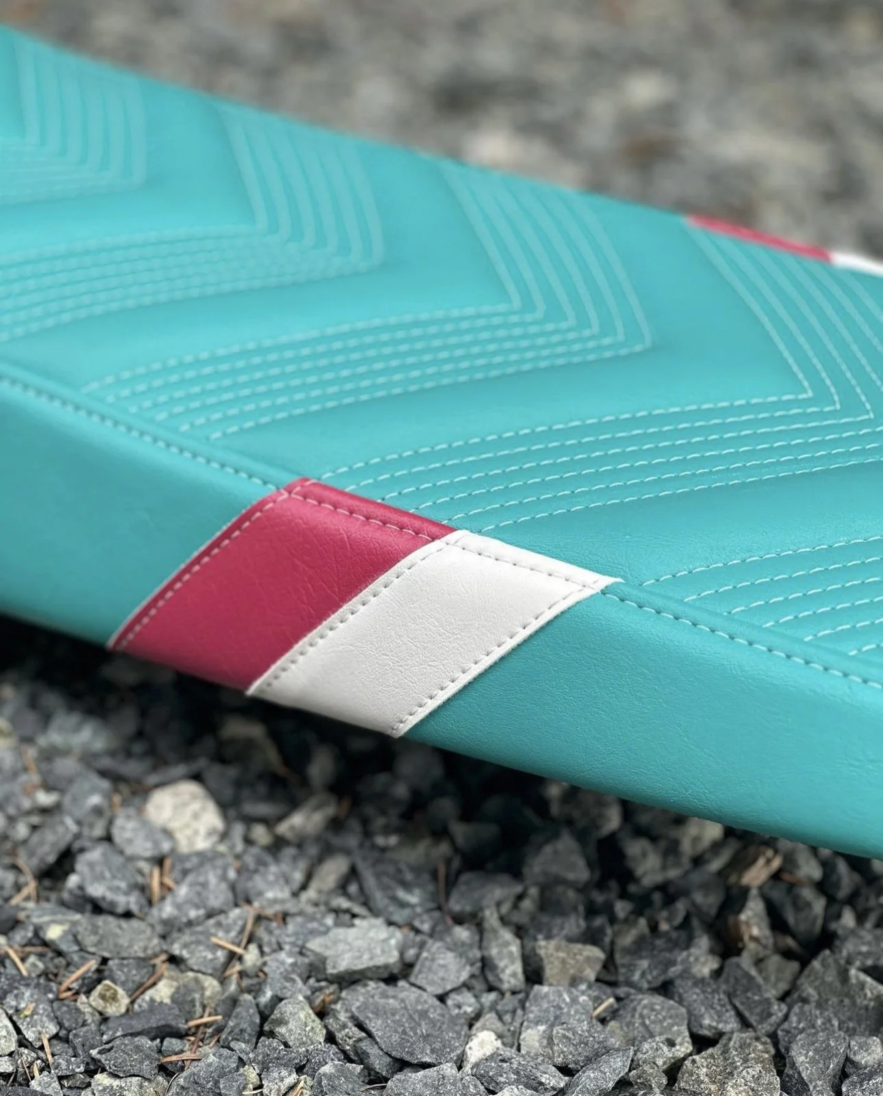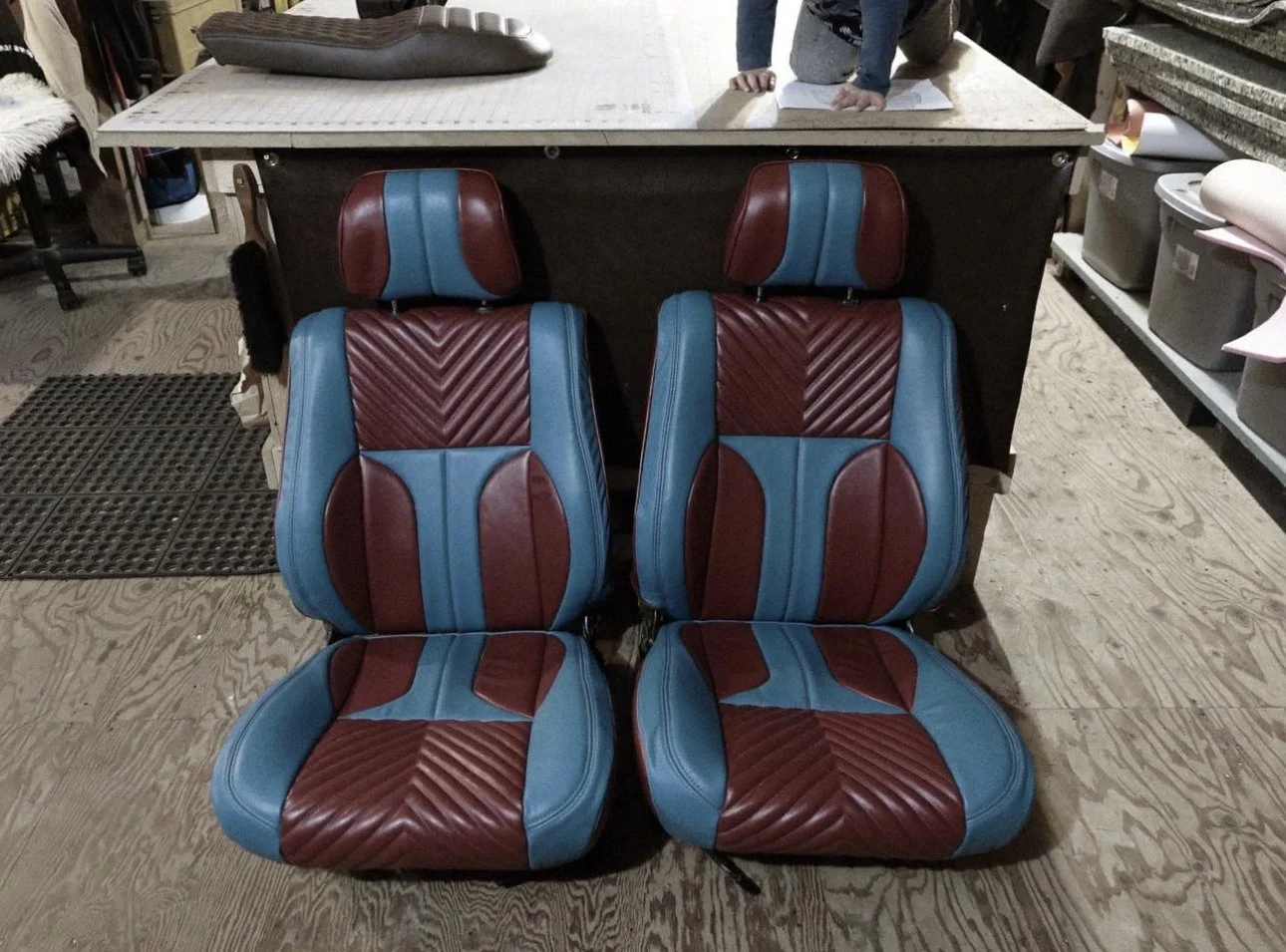Toyota 4Runner seats from the 1990’s destined for a 1960’s VW bus, in turquoise and crimson? That can happen. It all starts with a quick sketch. A lot of foam repairs. And a whole ton of patterning and sewing and pre planned installation magic.