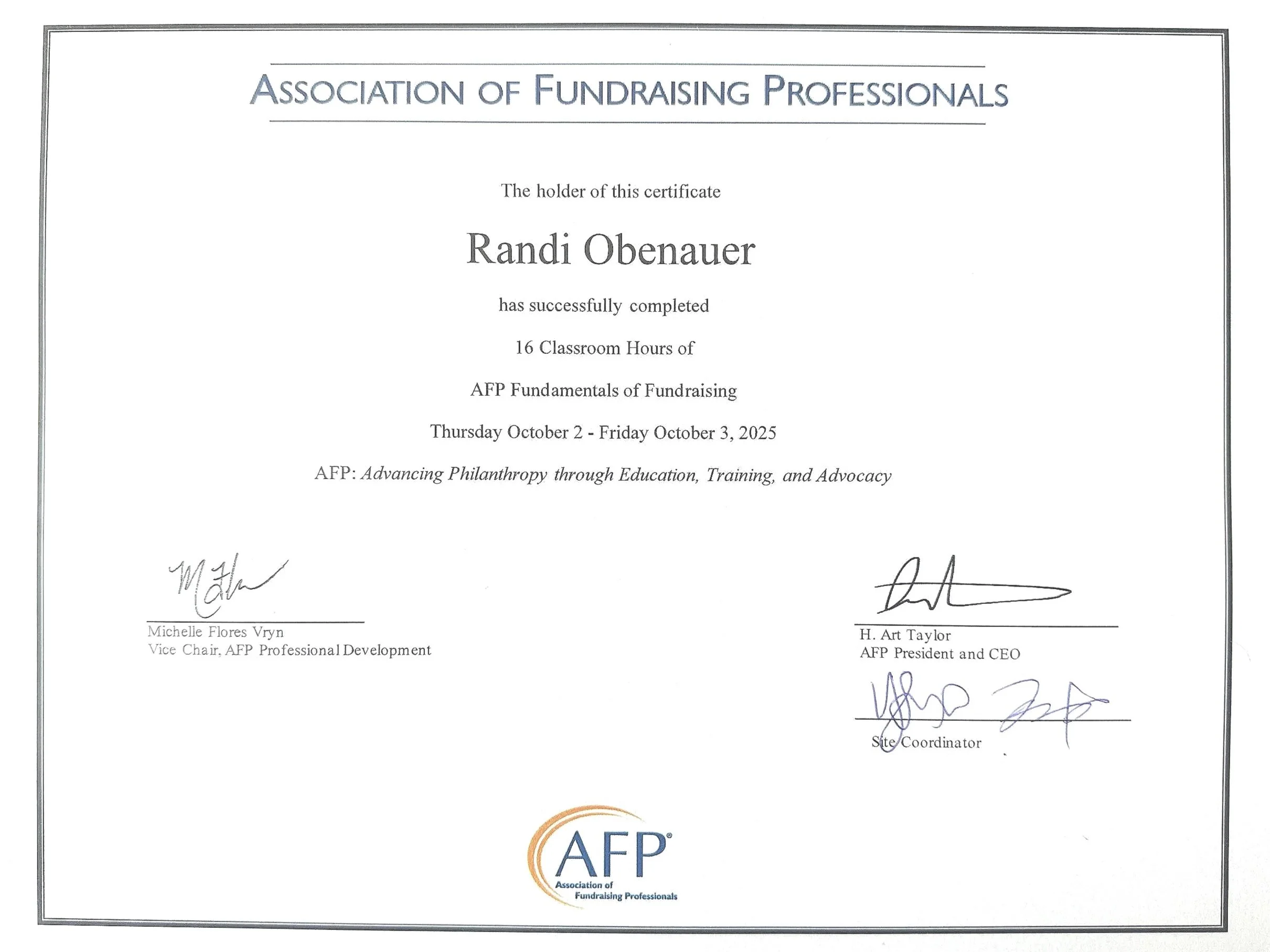 I am now an AFP member and look forward to exploring the mentorship opportunities available through the association. I was particularly inspired by how closely fundraising principles align with project management fundamentals, and I intend to integrate what I’ve learned into all my future projects.
